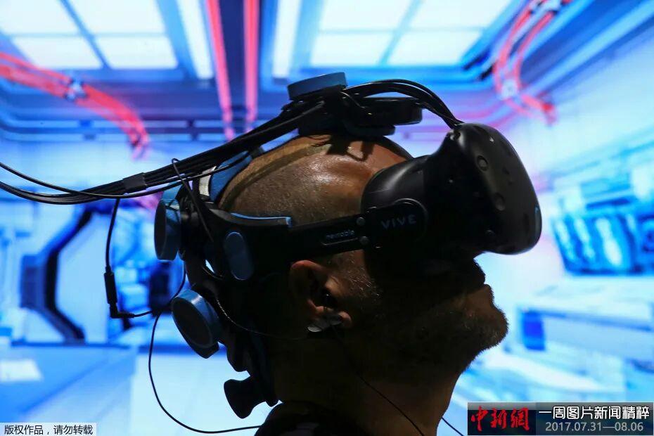 资料图:美国洛杉矶,民众体验Neurable脑控VR设备。