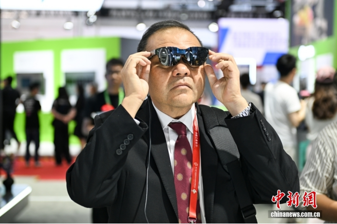 图为观众体验雷鸟AI眼镜。中新网记者 李骏 摄