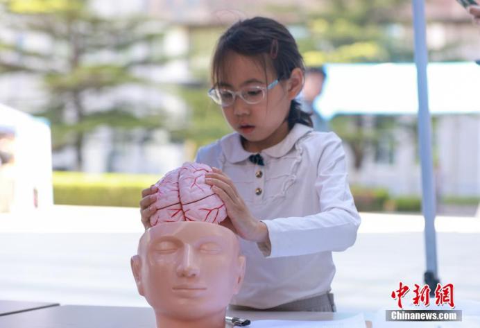 资料图:5月24日,2025年北京科技周暨“自动化之光”公众科学日在中国科学院自动化研究所正式开启。图为小学生在学习组装人脑模型。中新社记者 贾天勇 摄